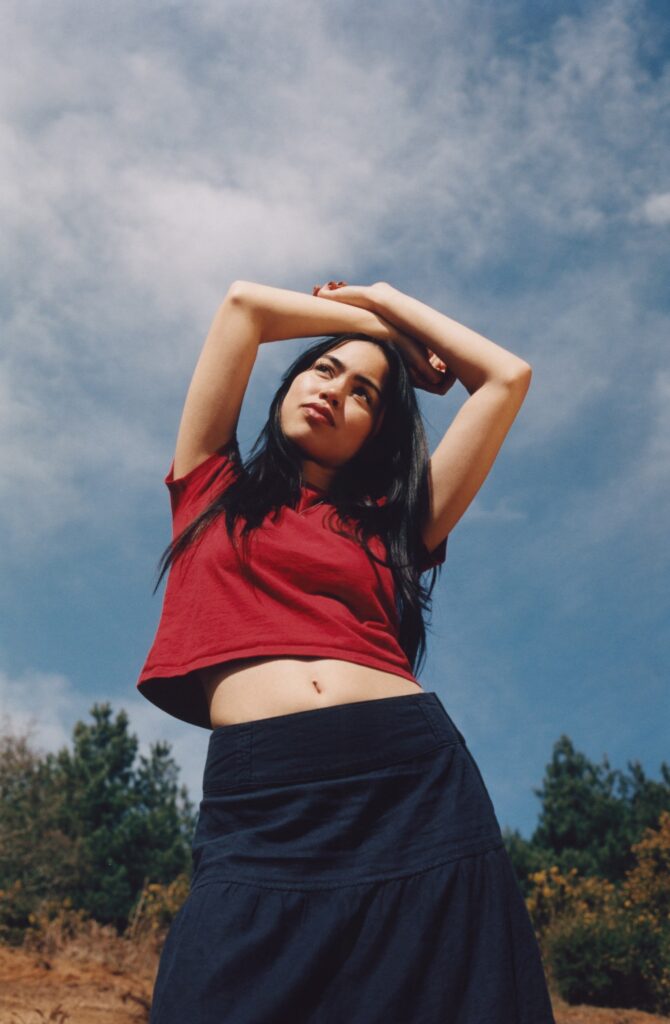 The sounds of Joni Mitchell, Lizzie McAlpine, and Lana Del Rey can all be heard blending to make Kadek’s soulful declaration of emotion. Kadek stares into the abyss wearing polka dots and retro earrings, effortlessly playing through a setlist of seven songs. Her second song, ‘Jenny From Dakota’, gives more of a melody to swing to: ‘I hope you don’t find some love with another one, I hope you don’t find this song on the radio’. Kadek’s songwriting is nothing less than beautifully transparent, never shying away from the pit of her feelings. In ‘Feeling it All’, her first ever release, she sings, ‘If you said jump I would, maybe that’s where I went wrong/ but I was only a kid, every child needs a hero to live’. Silence grows to every corner of the room, and stillness allows for each word to land like a teardrop. There is a casualness to her as she tunes her guitar, talking to the crowd like they’re sitting around a campfire roasting marshmallows.